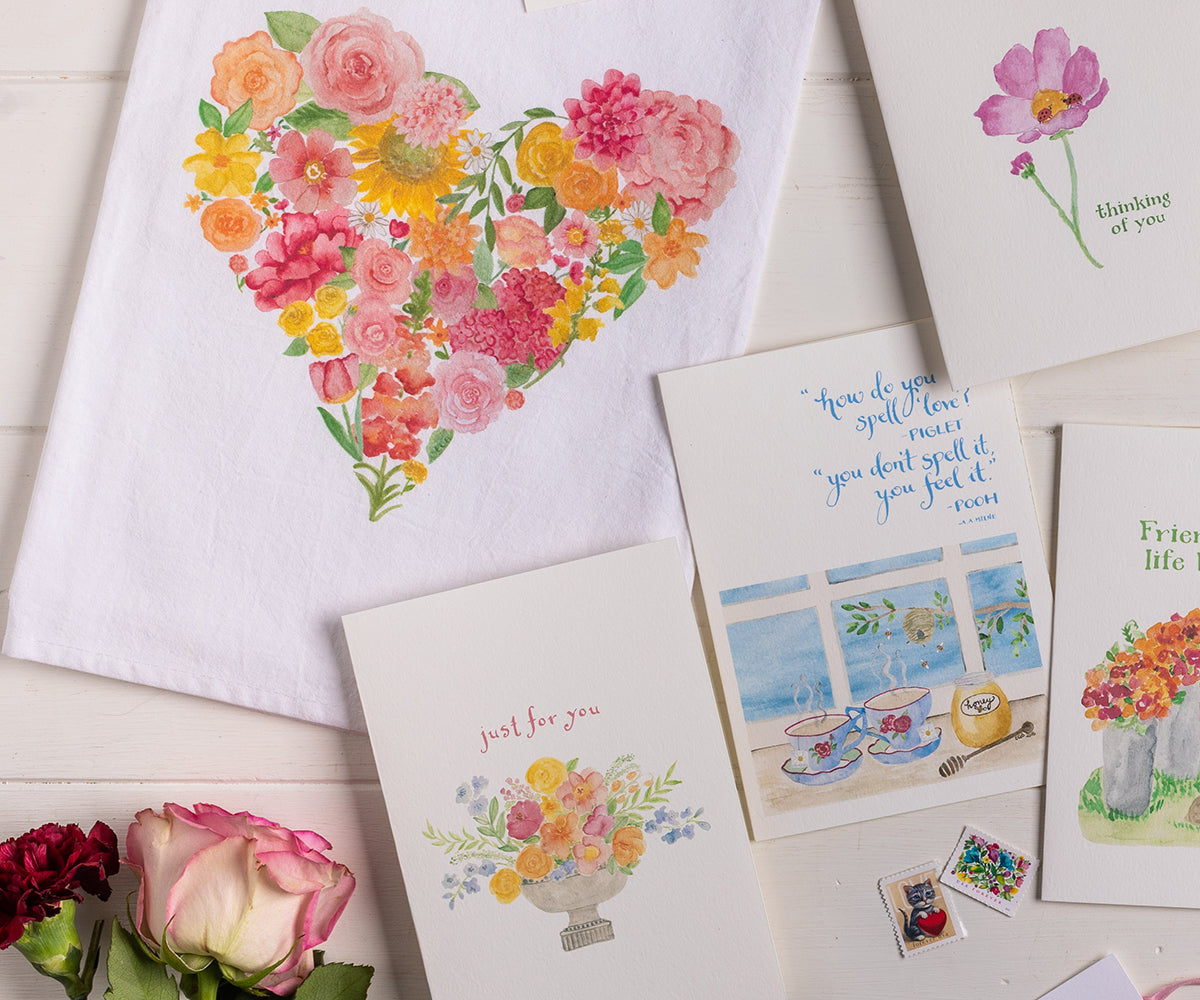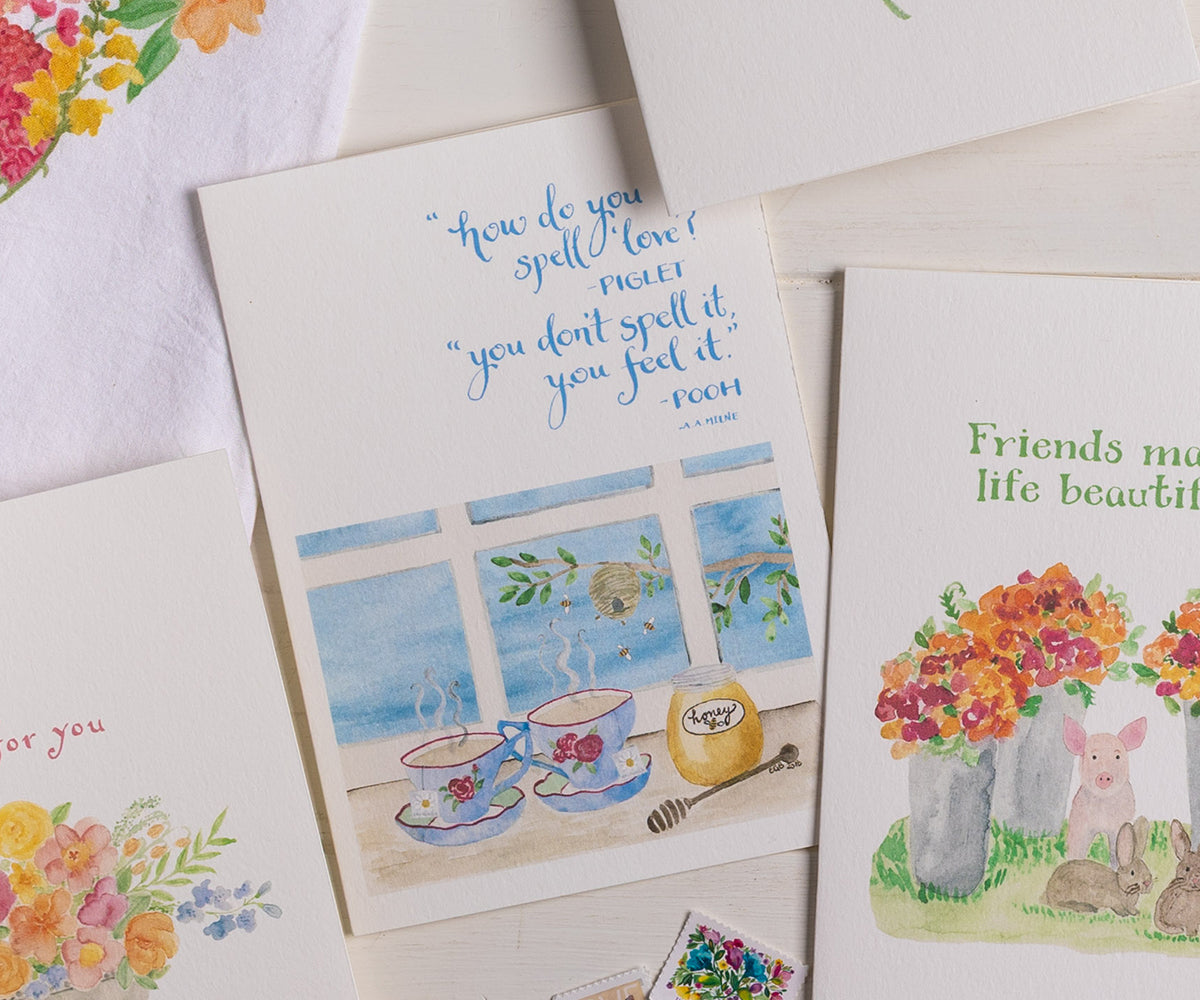 Each design is El’s own watercolor artwork with hand done calligraphy. Cards are always printed on high quality card stock.