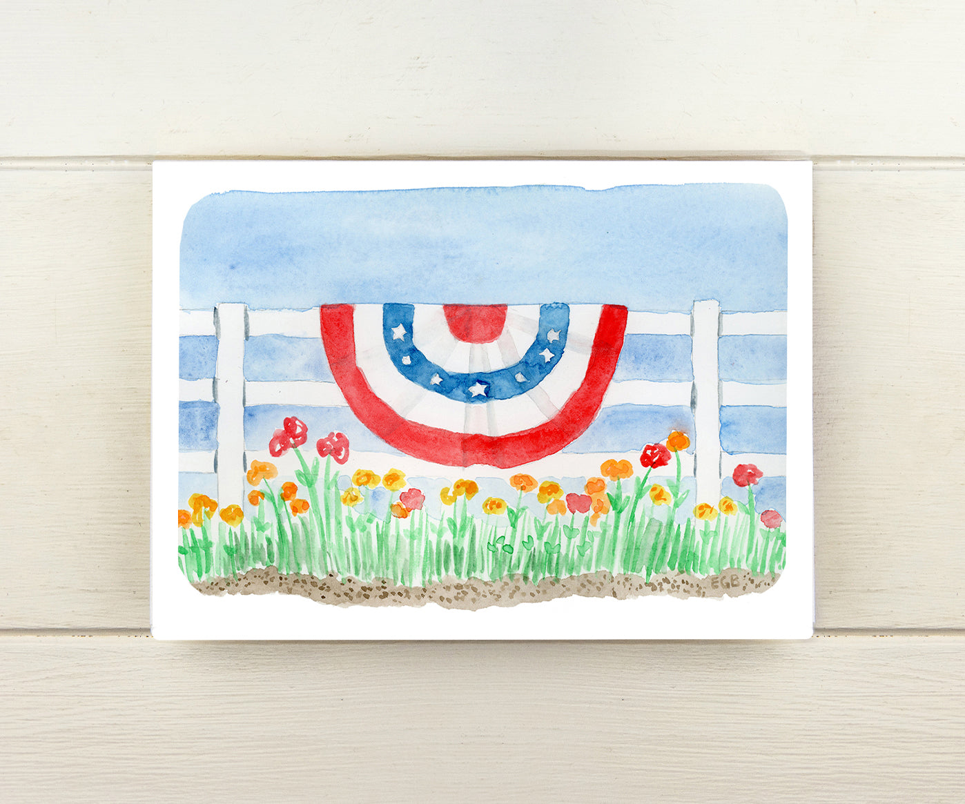 This bunting fence card calls to mind a parade route!  A fun patriotic and colorful card to make someone smile.