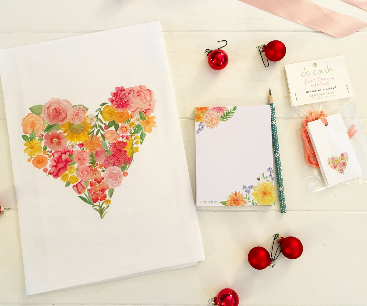 Have a heart! Or two! This heart bouquet gift set includes exquisite flowers in the shape of a heart and some of the flowers on a sweet mini notepad (our most popular size).