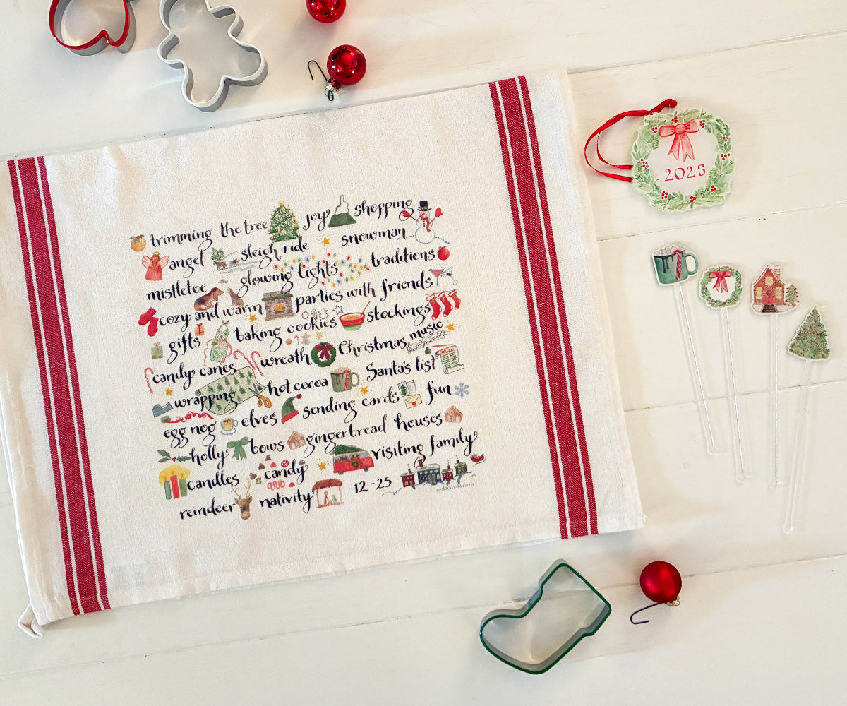 Our Simply Christmas design is simply delightful!  This design is all calligraphy Christmas words with little illustrations next to them.  So festive and fun!  Throw in our Christmas stir sticks and you've got yourself a party!  The stir sticks are great for anything from coffee to hot cocoa, to a festive cocktail.