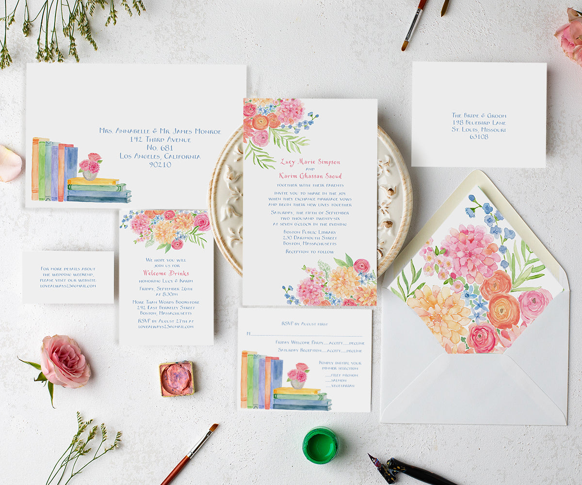 After you place your order, and we have your selected wording, you can expect to receive a custom proof in 3-5 business days. After your final proof is approved, you can expect 7-10 business days for Bob to print your wedding stationery. Keep in mind that different times of the year are busier than others. And if you are having us assemble and mail, the timeline will be different than if you plan to assemble and mail them out yourself. But don’t worry! I’ll be with you every step of the way!