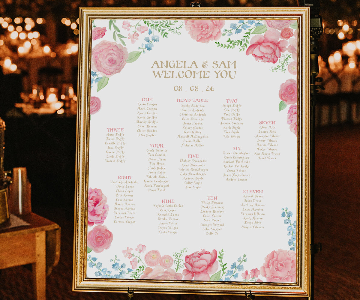 This peony bouquet seating chart is a lovely addition to your wedding reception.  Assign you guest seats, send us the list, and we do the rest.    The peony bouquet wedding suite is a wonderful choice.