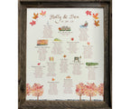 This lovely couple had El create a custom map to include with their Fancy Autumn Trees wedding invitation suite. For their semi-custom chart, El added illustrations taken from the map to Holly and Ben's late autumn wedding seating chart.